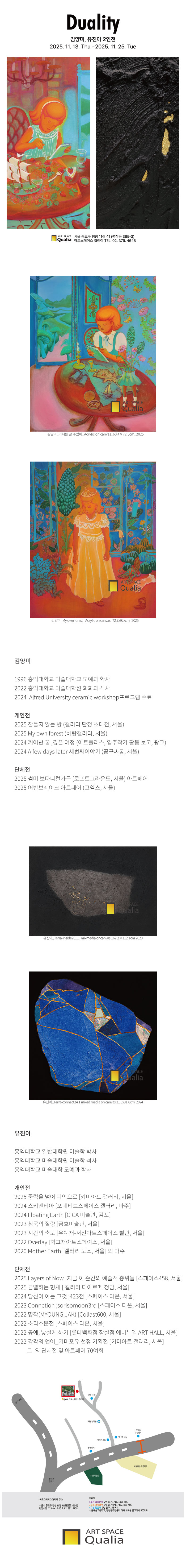 나의 작업은 일상적인 공간 안에 상상의 장면을 끌어들임으로써, 현실과 상상이 공존하는 경계를 탐색한다. 그 공간은 물리적인 장소라기보다, 감정의 기억이 겹겹이 쌓인 내면의 방이며, 동시에 ‘헤테로토피아(heterotopia)’적 공간으로 기능한다. 현실의 피로와 단절된 상상의 도피처가 아닌, 정서적 균형을 회복하는 회복의 장소로서의 상상, 나는 그 상상을 다시 바라보고자 한다. 나는 상상이 어떤 결핍을 보상하는 수단이 아니라, 지금 이 자리를 보다 풍부하게 감각하고 회복하는 방식일 수 있다는 믿음을 가지고 작업 하고 있다.나의 그림 속 방은 모두 닫힌 공간 같지만, 실제로는 많은 출구를 가지고 있다. 열린 창, 열린 옷장 문, 벽지 속 숲과 이어진 듯 한 배경들, 기이하게 변형된 소품들 속에는 현실 너머를 향한 시선이 담겨 있다. 예컨대 찻잔이 공중에 떠오르고, 흔들리는 커튼 너머보이는 동식물들, 사소한 테이블 위 지도는 머나먼 항해를 꿈꾸게 한다. 이 모든 오브제는 현실 세계의 사물 같지만 동시에 감정과 환상의 상징으로 기능한다.색체는 이야기의 또 다른 주체다. 나는 보색의 대비를 즐겨 사용한다. 안정감을 주는 그린과 강렬한 레드, 따듯한 오렌지와 차가운 블루의 충돌은 감정의 이중성과 긴장감을 드러낸다. 하지만 그 충돌은 결국 하나의 화면 안에서 조화를 이룬다. 이것은 내가 다루고 싶은 감정의 층위, 즉 설렘과 불안, 낯섦과 익숙함, 현실과 꿈의 양가성(ambivalence)을 시각적으로 구현하는 방식이며 서로 다른 감정과 대조적 색채가 조화롭게 한 화면에 보여 지길 바라는 의도이다.