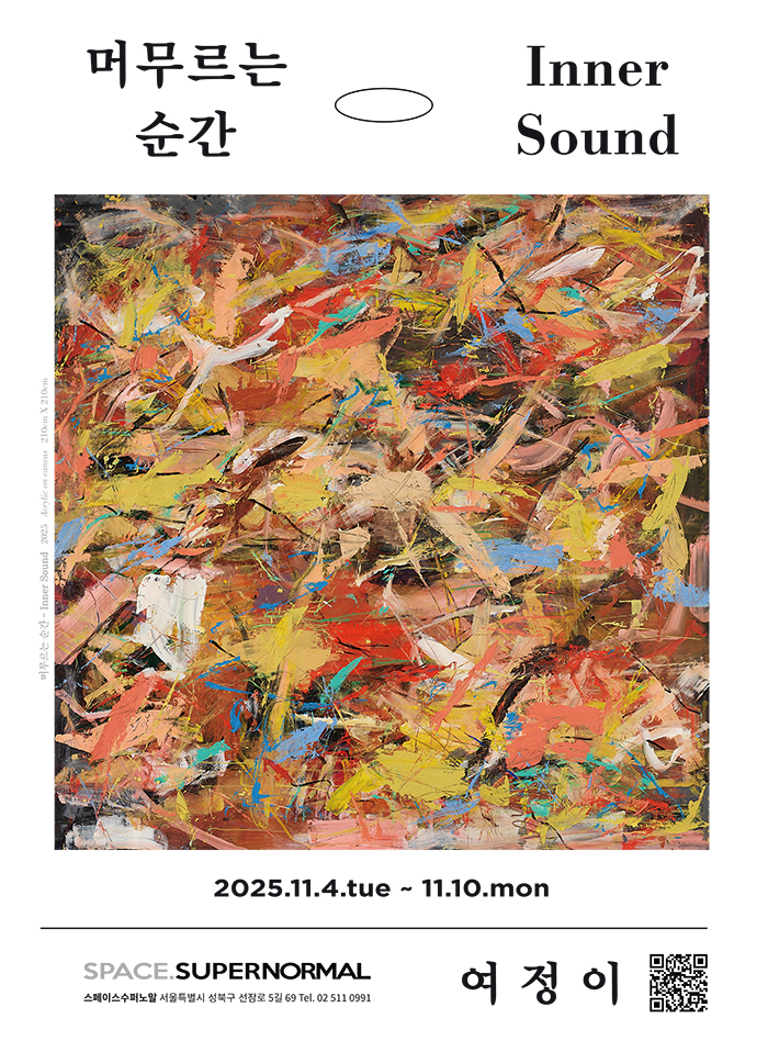 작가는 왜 이토록 ‘행위’를 강조할까. 그것은 회화가 단순한 결과물이 아니라, 삶을 관통하는 ‘과정’이기 때문이다. 여정이는 붓질을 통해 자신의 존재를 인식하고, 무의식 속의 감정과 경험을 시각적으로 재구성한다. 그 결과 그의 작품에는 항상 움직임이 있으며, 화면은 끊임없이 변화하고 살아 있는 듯한 생명력을 지닌다.