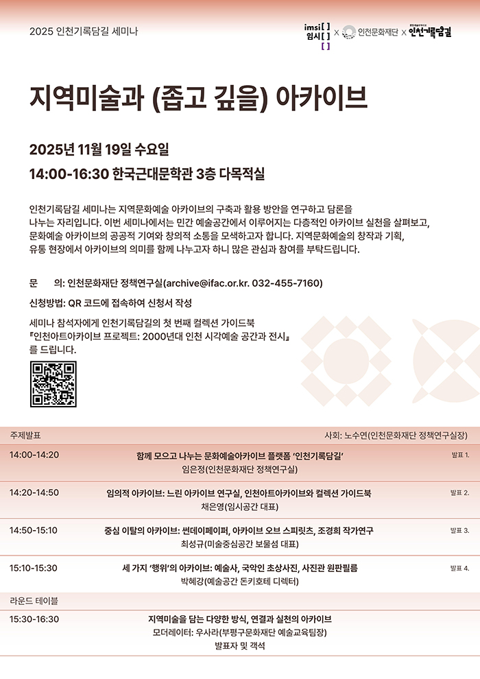 2025 인천기록담길 세미나 <지역미술과 (좁고 깊을) 아카이브> 신청 안내