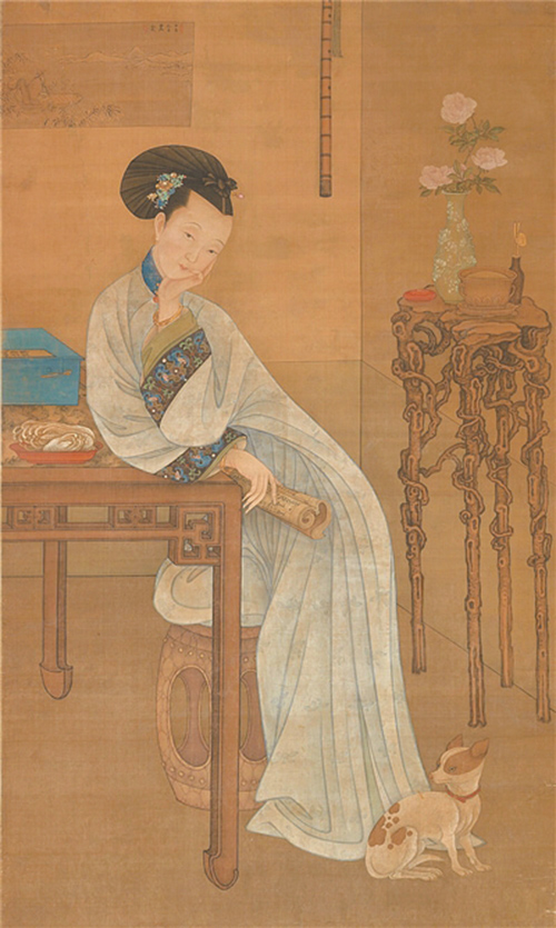 명·청 인물화의 정과 경(冷枚), 청대, 냉매 춘규권독도축(春閨倦讀圖軸),