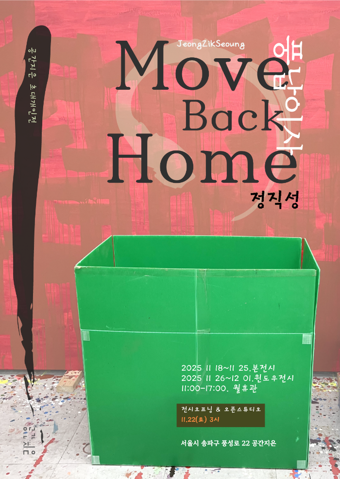 정직성 작가의 《풍납이사 Move Back Home》는작가를 조언해주던 친구의 슬픈 소식으로 죽음과 이사, 그리움이 뒤섞여 여러 변화의 요소들을 고스란히작품에 담아 보여주는 자리이자 감정을 전면으로 가져온 첫 전시라 하겠다.