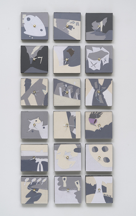 김은수, <실존기록>, 2025, 판넬에 시계 무브먼트, 부직포, 아크릴판, 105cm × 51cm
