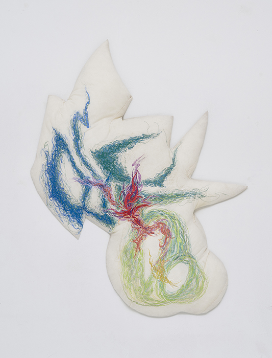 손희경, <민둥>, 2025, 천에 자수실, 솜, MDF, 45.5 × 39.0cm