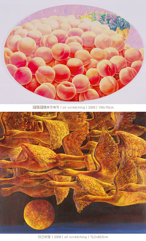 그의 그림은 집을 떠나 작업실에서 그리는 순간에서도 계속해서 아들을 위해 긁어주며 몸이 낫기를 바라는 간절한 기도의 행위며 또 그의 아들뿐만 아니라 다른 아픈 이들의 고통에 대한 치유되기를 바라는 기원으로 확대된 개념이기도 하다.