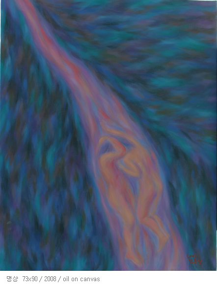 1990년대초부터 환경과 여성을 주제로 그림을 그리던 그녀는 90년대말 강화도 고향으로 내려갔다. 그리고 수년동안의 칩거를 끝내고 2007년부터 폭발적인 힘으로 갯벌 시리즈를 내놓고 있다. 왜 갯벌인가! 그곳에서 그녀의 여정의 비밀을 풀어줄 드림타임(Dreamtime)의 신화적 공간을 발견했기 때문이다. 그녀의 그림 속에 등장하는 찬란한 노을은 지는 해의 석양빛이 아니다. 그것은 태초에 우주를 창조하고, 지구를 만들고, 생명을 창조하던 시원의 빛의 색깔이다.