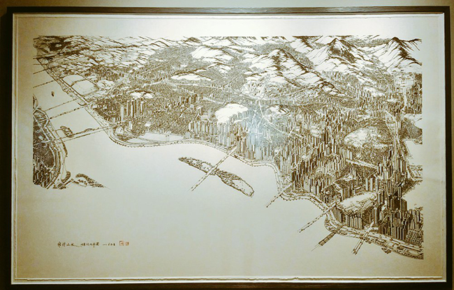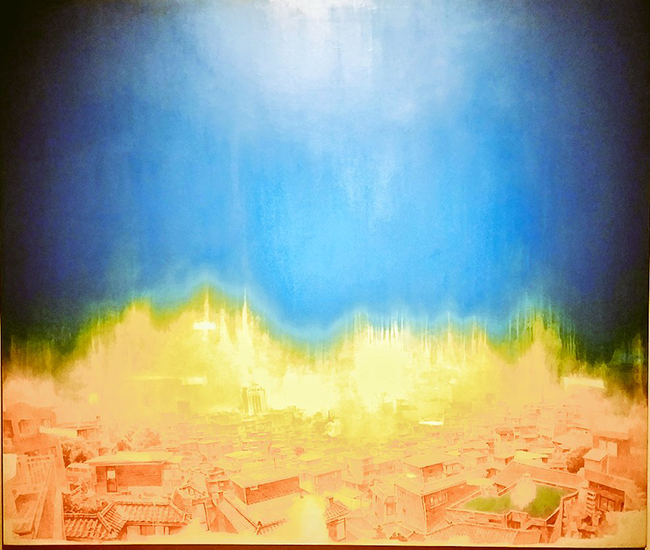 안충기 작가의 비행산수는 포스터에도 쓰인 작품으로 실제 작품에선 디테일하게 묘사된 서울의 풍경보다도 좌측하단의 여백에 더 몰입되었다.