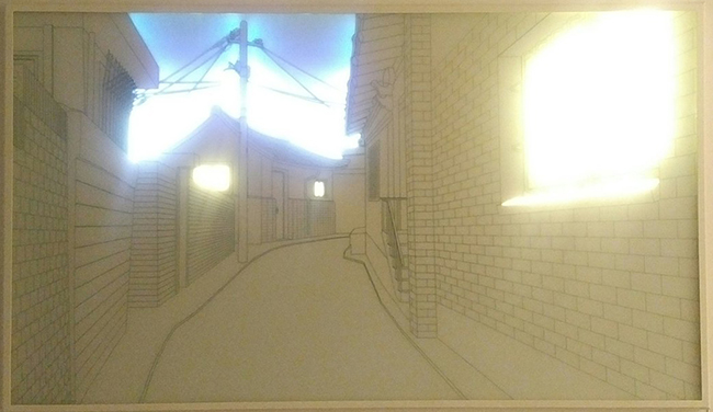 작품에서 빛을 물감이 아니라 백라이트를 대서 진짜 빛으로 표현하면 어떨까? 라는 생각을 해본 적이 있었는데 황선태 작가의 골목길을 보며 아 이렇게 되겠구나 하는 현실적인 느낌을 얻었다.
