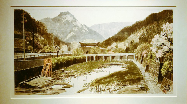 포스터에 사용된 또다른 작품인 안석준의 홍지문 춘경은 과거의 풍경들과 현재가 절묘하게 뒤섞인 홍지문의 정경을 생생하게 드러낸다.