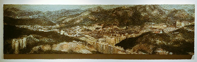 오치균 작가의 서울(홍은동)은 거칠고 두터운 질감으로 표현된 산과 아파트 그 너머의 풍경이 숨이 막힌다. 가로 폭에 비해 좁은 세로 폭에 답답한이 배가 된다. 두터움이 느껴질까 싶어 측면 샷도 찍어봤으나 렌즈로는 잘 전달되지 않는 것 같다.