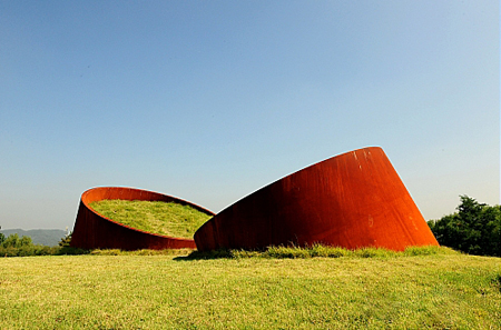 이 작품이 지닌 매력은 무엇보다 비스듬히 경사진 형태감이 주는 세련미에 있다. 땅에서 불쑥 솟은 것처럼 보이는 그것은 가장 긴 쪽의 높이가 2.4미터에 달하기 때문에 가까이에서는 전체의 모습을 볼 수 없는 것이 흠이다. 그러나 멀리서 바라다본다면 강철 통의 검붉은 색과 그 안에 담긴 잔디의 파란 색이 조화를 이루어 관람객들에게 시각적 쾌감을 가져다 줄 것이다.