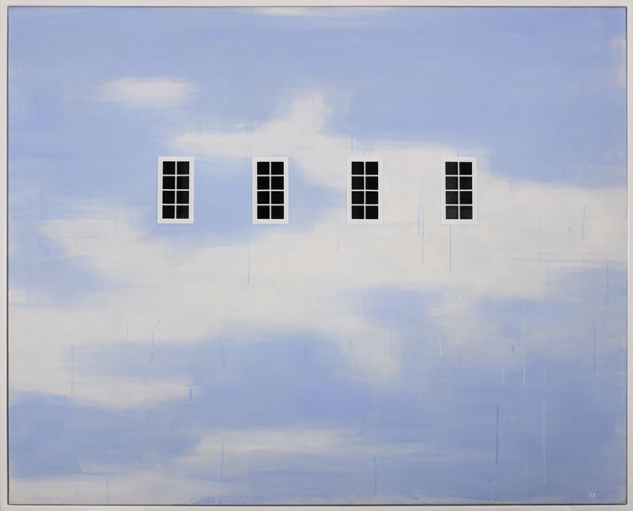 파란 하늘과 그리고 추상의 이미지의 그림이 올 오버 페인팅 되어 있고 그 위에 하나, , 아니면 네개 등으로 작은 창문 모양이 캔버스에 부착됐다. 화면 너머의 무엇을 보기 위해 창문을 설치했는지를 질문을 했다. 작가는회화 너머에 뭐가 있을까?...... 어느 날 불현듯노자가 나타나 그림 너머의 세상을 보거라. 표면에 무엇이 있다고 집착하는가?” 라고 귀뜸해 준다. 허만하 시인의 <목숨의 함정> 중에 아름답다/사라지는 것은 아름답다/시에게 언어가떠난 뒤의 빈 숲은/아름답다.” 이런 대목이 떠오른다. 김을의 창문은 우리의 시지각을 눈에 보이는 실체적인 것인 것이 아닌 그것을 둘러싼 빈 여백의 공간으로 이동하게하는 메타포이다. 즉물적으로 보여진 조형언어는 이것이 회화이다라고 단정할 수 없는 미지의 조형언어을 제시한다.  캔버스 너머로 세상을 탐구하는 작가의 미세한 미적 여정은 창문으로 그치지않는다. “회화의 공간은 고난도 방적식의 입체 공간이다.”라고말하며 그려진 캔버스로 완결하지 않고 가구의 서랍장 기능이 배제된체 입체적 특성을 고려한 혼합 형으로 표현한다. 'untitled ' 시리즈 중 캔버스가 두 개이고 커튼, , 새둥지 등 오브제가 등장하는 작품이 있다. 이는 이중적인 회화의 공간, 커튼 너머의 비물질적  공간,  의도를 알 수 없는 새와 새둥지, 이렇게여러가지의 복합적인 의미가 하나의 회화공간 안에서 뒤섞여있는 일명 콤플렉스페인팅이다.