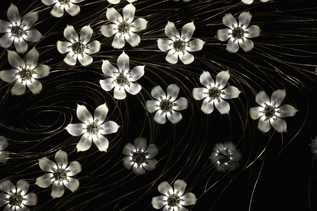 드로잉은 대충 그려진 듯하나 그 안에 탑재될 기능을 포함하고 있으며, 현대의 문화 생태계와 긴밀하게 얽혀있는 서사적 상상력은 통상적인 미술가가 가지고 있는 이상의 기술력에 가려지곤 하는 예술적 영감을 예시한다. 기계 또는 구성주의적인 예술작품이 그러하듯이, 분절화 된 구성단위들이 조합된 골격계 중심의 형태들은 영감의 근원이 자연의 구조에서 왔음을 알려준다. 권력과 욕망의 문제가 강조되면서 황금빛 화려함 또한 가세한다. 구조 자체가 장식적일수도 있고 장식은 어떤 기능을 맡을 수 있다. 모더니즘 시기에 장식과 기능은 대척점에 있었지만, 소형화 기술의 발달은 양자 간의 관계를 변화시켰다. 가령 2013년 작품인 금색 은색 곤충 모양의 램프들은 장식과 기능을 결합시킨다. 2012년 작가는 어둠 속에서 빛나며 움직이는 램프들의 설치만으로 신비로움으로 가득한 공간을 연출하기도 했다. 2000년대 중반 이후에는 해외전시가 더 많았기에 한국의 관객으로서는 한 장소에서 이렇게 많은 작품을 본 것은 처음일 것이다.