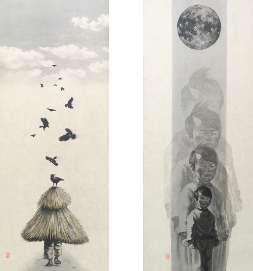 (좌)그슨새, 장지와 비단에 채색, 72.7x30cm, 2017