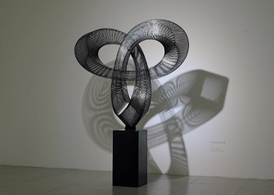 뫼비우스 띠는 평면의 앞면과 뒷면의 대립을 꼬아 이어서 2차원 평면으로부터 3차원 입체(본질적으로는 2차원 다양체)로 일으켜 세우고 평면의 앞과 뒤를 같은 존재로 만든다. 경계를 없애는 이러한 뫼비우스 띠의 모델은 꼬여 있지만, ‘단절되지 않은 채 이어진’ 토러스 매듭과 맞물리면서 3차원의 유연한 조각을 만든다.