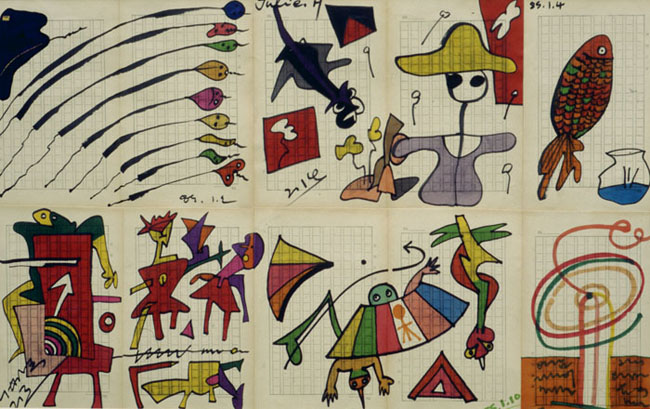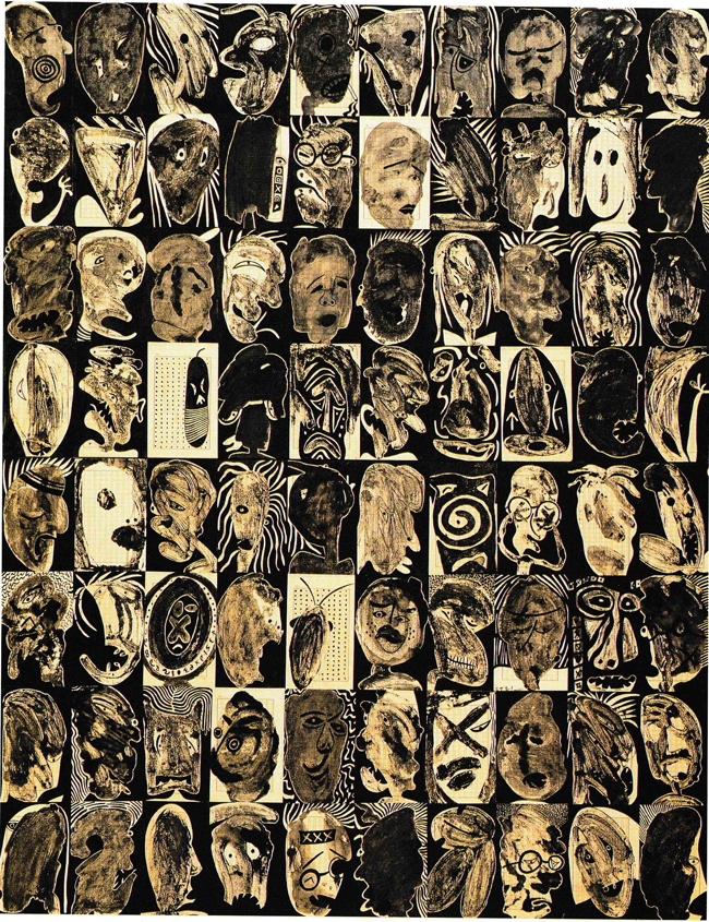 황주리, <추억제>, 1985, 원고지에 오일마커, 45×71cm