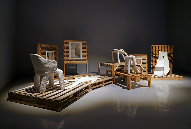 요즘 작업에서 기괴하게 변형되어 기능을 상실한 의자 또한 마찬가지 맥락이다. 물건은 늘 인간과 비유되곤 한다. 신체를 감싸는 구조인 의자는 특히 그러한데, 문혜주의 작업에서 의자 형식을 빌은 작업은 인간이라는 종의 결정적 기능인 생식 또한 변형시킨다. 굳이 생식이 있다면 그것은 유성생식이기 보다는 무성생식, 즉 분열이다. 특히 그림자가 본체를 잡아먹는 듯한 형태는 실체화되지 못한 나머지들의 가치 전도를 꾀한다. 의자가 사람은 물론 사회적 위치라는 상징을 생각할 때, 상징적 질서에 대한 작가의 불만 또한 반영되어 있다. 예술가 입장에서 사회가 지정해준 자리나 정체성은 변화를 필요로 한다. 작가가 구멍 난 병과 하수도 망을 같이 배치한 것은 생성된 것이 무엇이든 막힘없이 흘러야 한다는 생각을 반영한다. 유약도 사용하지 않고 그냥 허옇게 만들어진 도자기들은 무엇인가 새겨지기 전, 또는 후를 말한다. 그런데 원래 그것이 일회용 상품의 용기라는 모델을 가지고 있었기에, 그것은 텅 비워진 셈이다.