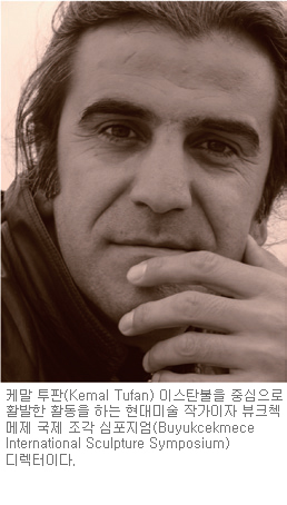 A. 뷰크첵메제 국제 조각 심포지엄은 전세계 60여 개국이 참가하는 뷰크첵메제 국제 문화 페스티벌과 함께 개최되어진다. 위에 언급한 지역화와 다양성의 입장에서 본다면, 뷰크첵메제 국제 조각 심포지엄은 지난 11년간 터키를 중심으로한 다양한 국가 및 다양한 미디움의 카테고리 안에서 현대조각의 계보의 한 장을 보여주는데 기여하고 있다고 생각한다.