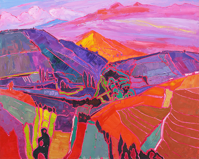 Zaw Win Pe says, “I paint the emotions that hit me when I look out over a particular scene. Sometimes, it seems as if my feelings are exploding and the hills are ringing with colors. I believe color can tell everything about a person’s thoughts and feelings.”
