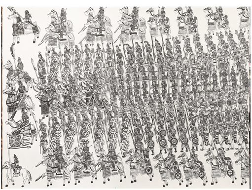 심규철, 〈고구려의 행군(2)〉 종이에 펜, 56x76cm, 2024