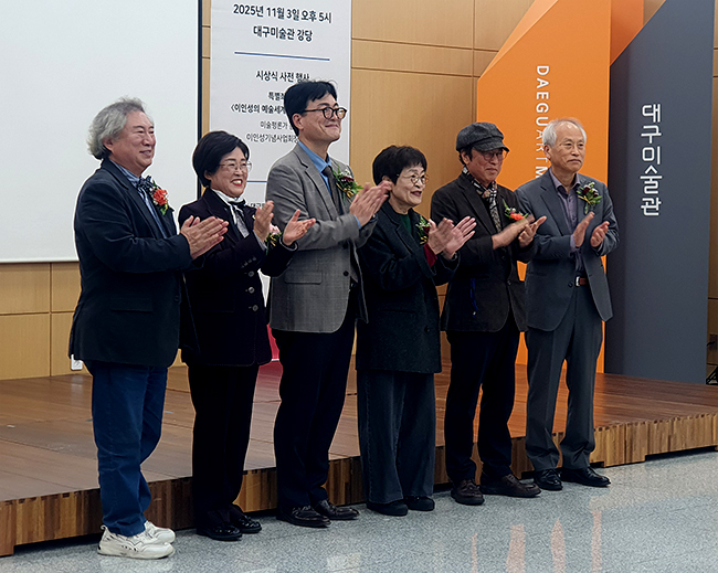 제 26회 이인성미술상 수상자 이명미(1950) 작가의 시상식이 앞서 대구미술관 강당에서 개최되었다. 1950년 대구에서 태어난 이명미 작가는 홍익대학교 미술대학 및 동대학 교육대학원을 졸업하였다. 1974년 대구현대미술제, 1975년 35/128 그룹 등에 참여한 대표적인 여성 화가로, 현재까지도 끊임없는 작업 활동으로 수많은 개인전과 단체전에 활발히 참여해 왔다.