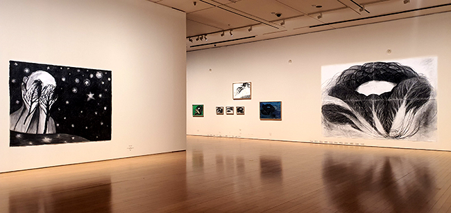 제25회 이인성미술상 수상자 허윤희의 개인전 《가득찬 빔Beams of Emptiness》이 11월 4일부터 2026년 2월 22일까지 대구미술관에서 열린다. 1968년생 허윤희 작가는 인간 존재의 근원과 자연의 순환을 탐구하며, 실존적 사유와 생태적 감각을 결합한 독자적 작품 세계를 구축해 왔다. 나무를 태워 만든 목탄을 주 매체로 삼아, 그리기와 지우기의 반복을 통해 삶의 흔적을 회화적 행위이자 수행의 과정으로 확장해왔다.
