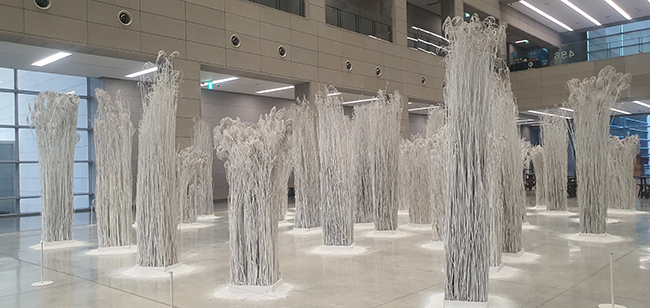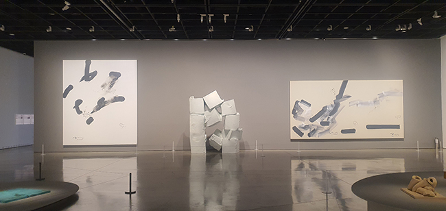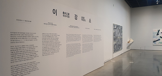 또한 어미홀에서는 이강소의 첫 개인전 출품작 〈소멸〉(1973)을 중심으로 갈대와 브론즈 조각이 어우러진 공간이 펼쳐진다. 창으로 스며드는 자연광과 설치가 어우러지며, 관객은 낙동강변과 현재의 미술관을 동시에 경험하고 곡수의 흐름 속에 자리한 작가의 예술을 체감할 수 있다.