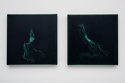 이춘영의 ‘뿌리 회화’는 새로운 실험에 나선다. 이전 작업이 열매 속 씨앗이 발아해 식물을 키워내는 초현실주의적 형태, 씨앗이 품은 어머니의 자궁과 같은 생명 모태로서의 형태, 식물이 동물성과 혼성하면서 강력하게 등장하는 자연 생명력의 형상과 같은 ‘형태적 이미지 표현’에 집중해 왔다면, 최근 작업은 실제 뿌리를 통한 ‘물질적 이미지의 제시’라고 하는 방식으로 보다 심층적으로 생명의 근원에 대해 탐구하는 방식으로 변모하고 있다.