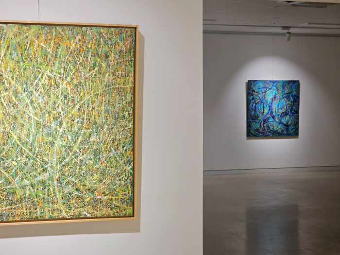 표현주의적이라고 할 수 있는 역동적인 필획이 결코 감정의 표출로서가 아니라 합리적인 제어와 절제의 마무리 과정을 거침으로써 다른 기억의 시간과 행위의 흔적이 혼재하면서도 서로 충돌하지 않고 조화롭게 상생하고 있다. 얽혀있는 색채들이 결박되어 있다는 느낌보다는 서로 연결되고 붙잡고 있으면서도 자유롭게 자신의 존재적 진실의 목소리를 화면 밖으로 쏟아내고 있다. 그것은 단선적인 멜로디가 주도하는 독창이 아니라 서로가 손을 잡고 상대방의 눈동자를 바라보고 반영하며 부르는 혼성적인 울림과 화음의 합창과도 같다.
