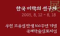 올해는 광복 60주년, 한일 수교 40주년이 되는 역사적인 해이다. 또한 한국 미학의 지평을 연 우현 고유섭 탄생 100주년이 되는 해이기도 하다. 이를 기념하여 인천문화재단에서는 한국 미학의 선구자, 우현 고유섭의 생애와 연구자료 展을 개최한다. 우현 고유섭 1905년 인천 용리에서 태어난 우현은 우리나라에서 최초로 미학과 미술사를 연구하여 일제사관에 의해 왜곡된 민족문화를 바로잡았다. 또한, 미술사의 실질적인 개척자로서 눈부신 연구와 조사활동, 그리고 정력적인 집필생활을 했던 인물이다. 1933년 개성시립박물관 관장으로 부임했던 시절, 언론매체를 통해 우리나라의 문화유산과 미술문화재에 대한 글을 기고, 민족문화재의 재인식을 호소하고 이를 널리 알렸다. 고유섭은 1944년 41세로 요절하기까지 짧은 생애에도 불구하고 석탑에 최초로 양식 개념을 준 '조선 탑파의 연구', 회화사 연구의 길을 닦은 '조선화론집성' 등 8권의 책과 150여 편에 달하는 논문을 남기는 커다란 업적을 남겼다.