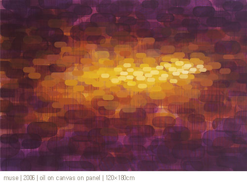 유기체적인 원형과 타원들이 반복되게 겹치면서 회화만의 평평한 깊이와 색의 빛을 만들어내는 화면은 아름답다. 가장 기본적인 도형과 색채로 이루어졌으며 수고로운 손의 노동이 감각적으로 축적된 화면은 미묘한 공간의 깊이와 환영을 보여주는 한편 시간의 지층과 마음의 여러 겹, 생각과 말들의 헤아릴 수 없는 떠돎을 은유한다.