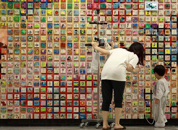 지금 과천의 국립현대미술관에서는 개관 40주년을 기념해 마련한 강익중의 ‘산에 오르다:멀티플 다이얼로그’전(2009. 2. 6. - 2010. 2. 7.)이 열리고 있다. 백남준의 <다다익선>이 놓인 램프코어 벽면에 6만여개의 작품 <삼라만상>이 설치된 것이다. 이 작품은 강익중이 아버지와도 같은 백남준에게 보내는 오마주다.