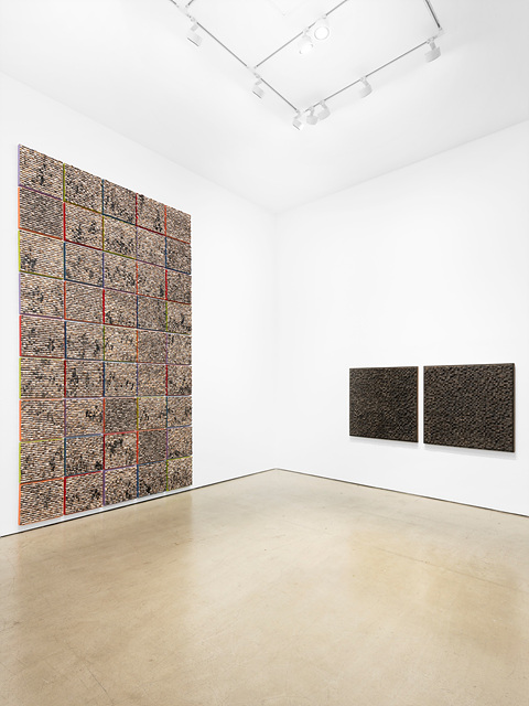 [갤러리현대] 강익중, The sweetest sound to me is raindrops falling on leaves, 2003-2022, 나무에 혼합재료, 48.3 x 109.2 cm