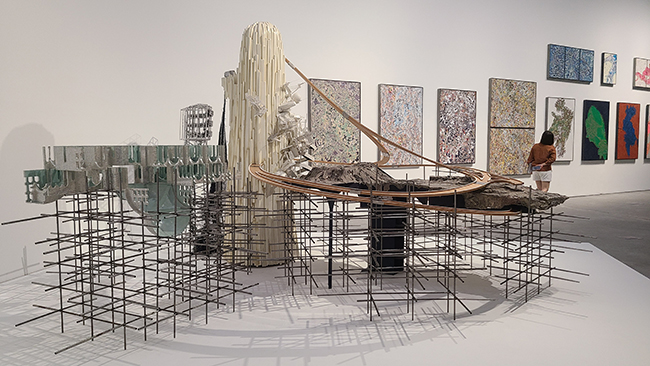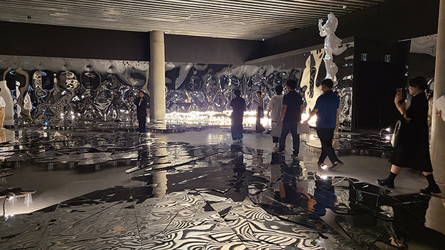 전시의 주요 작품으로는 인간과 기계의 관계를 탐구한 〈사이보그〉, 유토피아적 이상을 다룬 〈몽그랑레시(Mon grand récit)〉 연작, 그리고 1999년 베니스 비엔날레에서 선보인 노래방 작업 등이 포함된다. 또한, 벽과 바닥을 거울로 감싼 대형 설치 〈태양의 도시 II〉와 뉴욕 메트로폴리탄 미술관 커미션 작품인 〈롱 테일 헤일로〉 등 최근작도 함께 선보여 작가의 폭넓은 작품 세계를 보여준다.